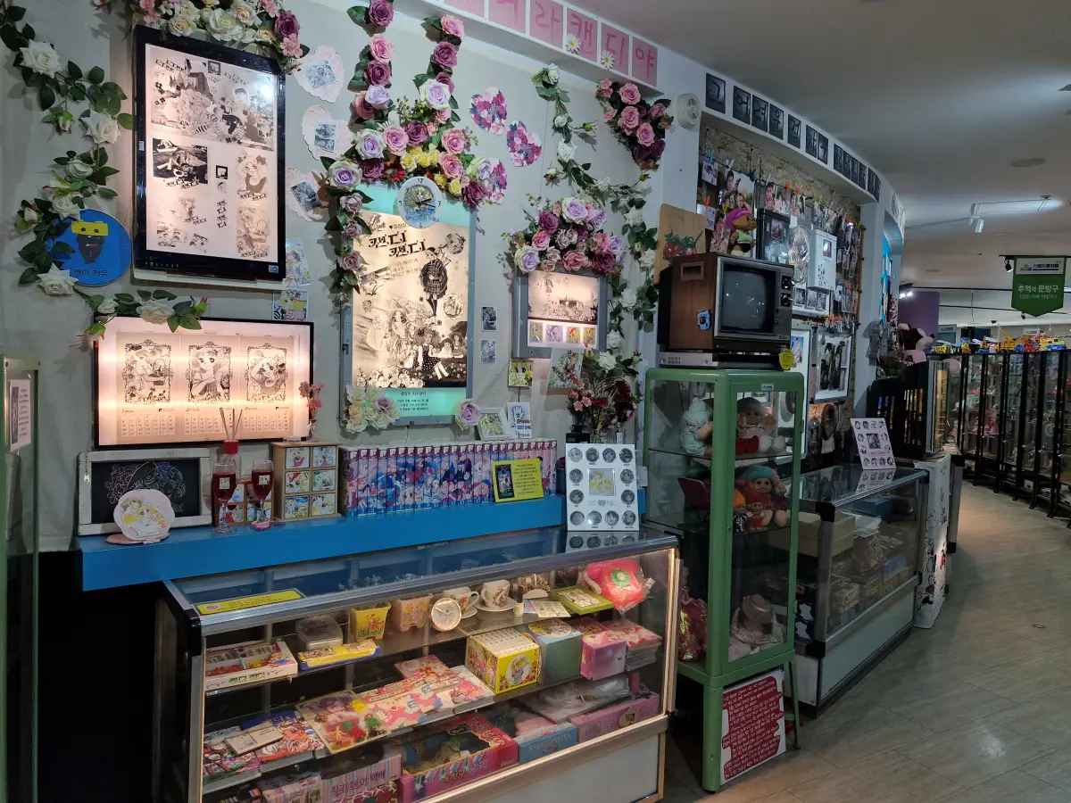 저는 캔디를 보긴 봤지만 너무 어렸을 때라 기억이 나지 않아서 캔디에 대한 추억은 없지만 캔디 물품들을 보니 신기했어요. 아래쪽에 미미 인형을 보니 반갑고 좋더라고요. 요즘 아이들 티니핑 모으듯이 저희 때는 미미인형을 모았었거든요.