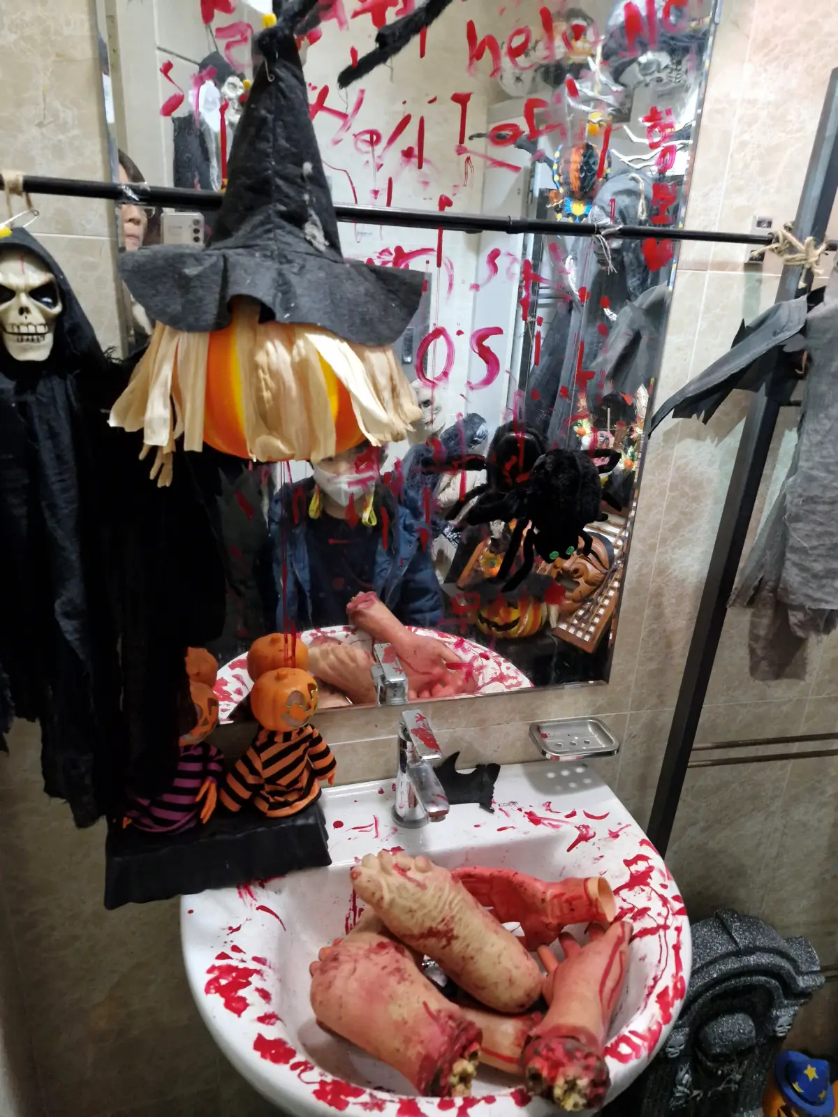 사용하지 않는 화장실을 이용한 할로윈 전시관입니다. 사실 전시관이라 말하기도 좀 애매할 만큼 아주 작습니다.