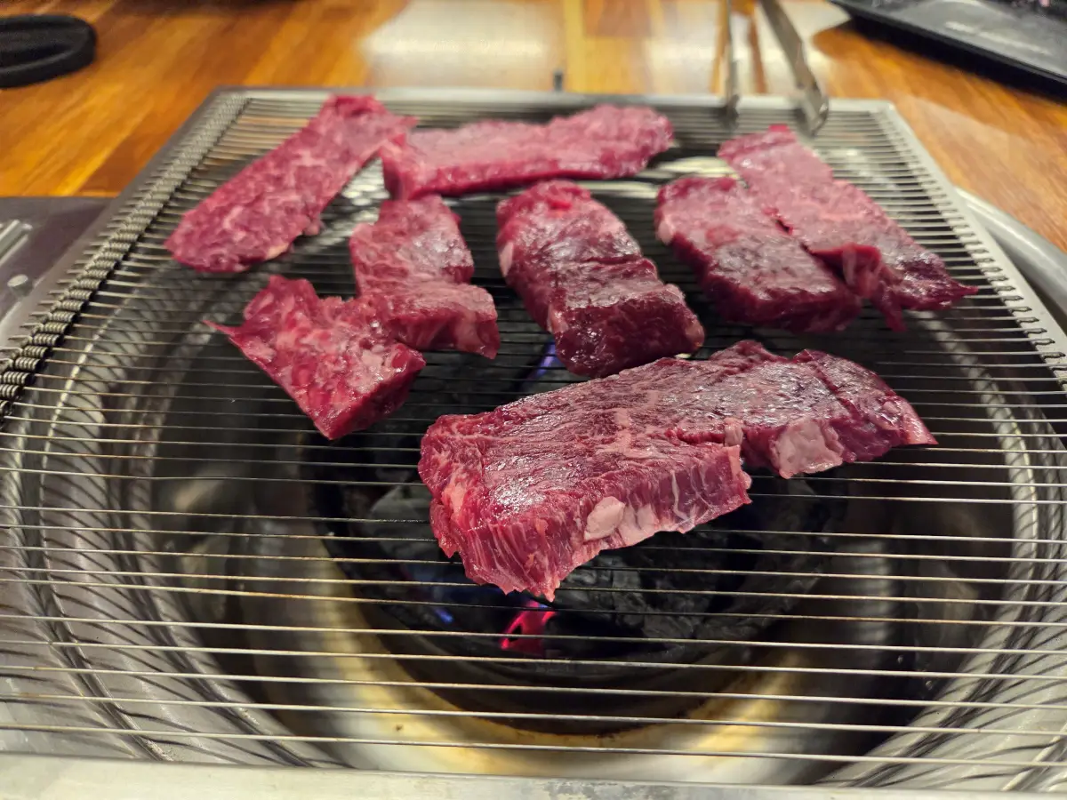저번에 먹은 건 어떤 게 더 맛있었는지 기억이 잘 안 나고.. 이번에 먹은 부챗살과 치마살 중에는 치마살이 더 부드럽고 좋았습니다.