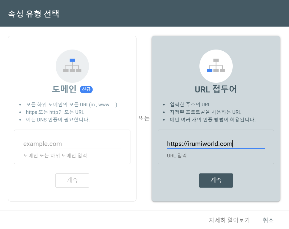 구글 서치 콘솔 등록에는 예시가 https로 되어있기 때문에 무의식적으로 https로 등록을 합니다.