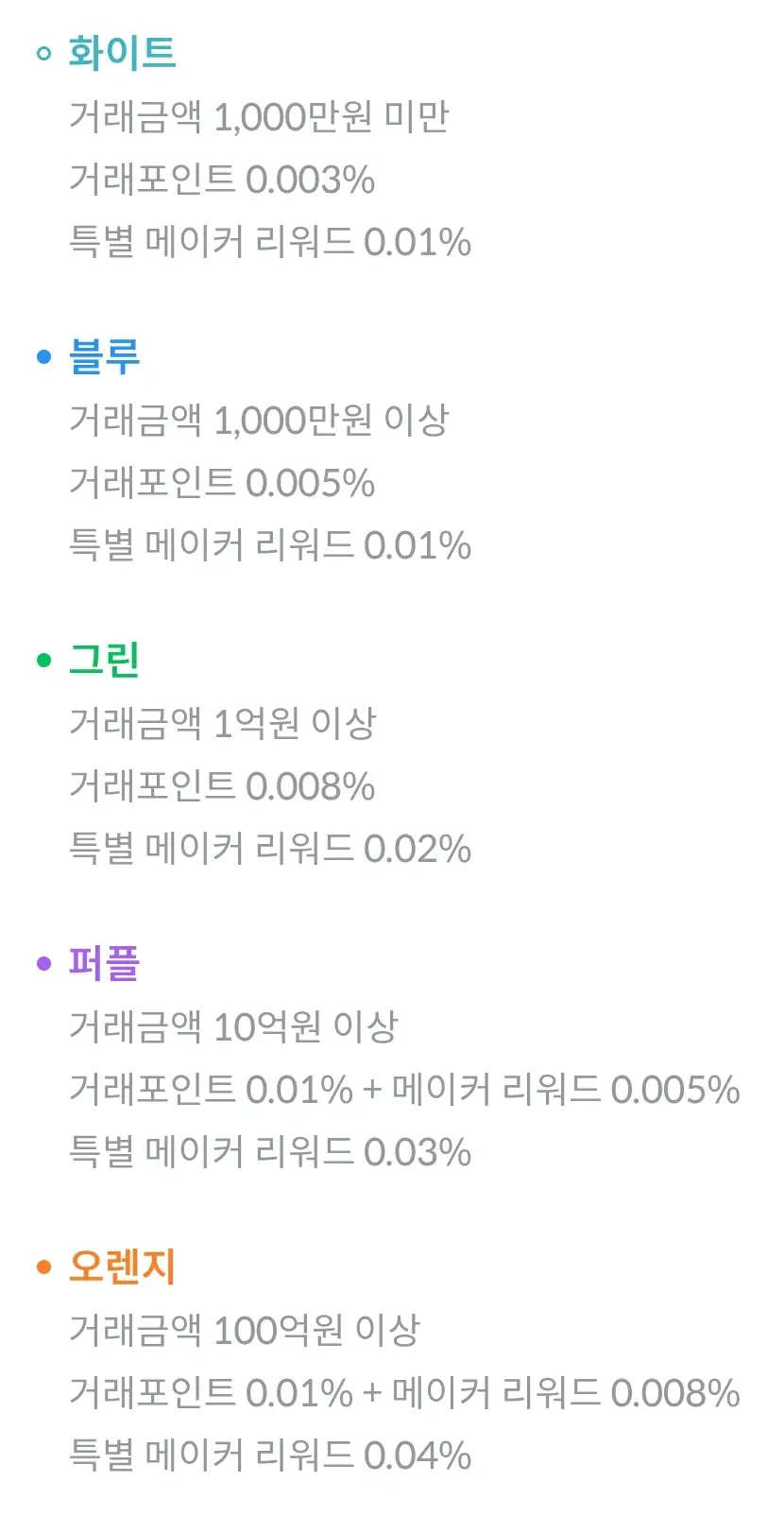 하지만 퍼플 등급 이상부터는 빗썸 수수료 0.04%를 포인트를 통해 메꿀 수 있어서..
