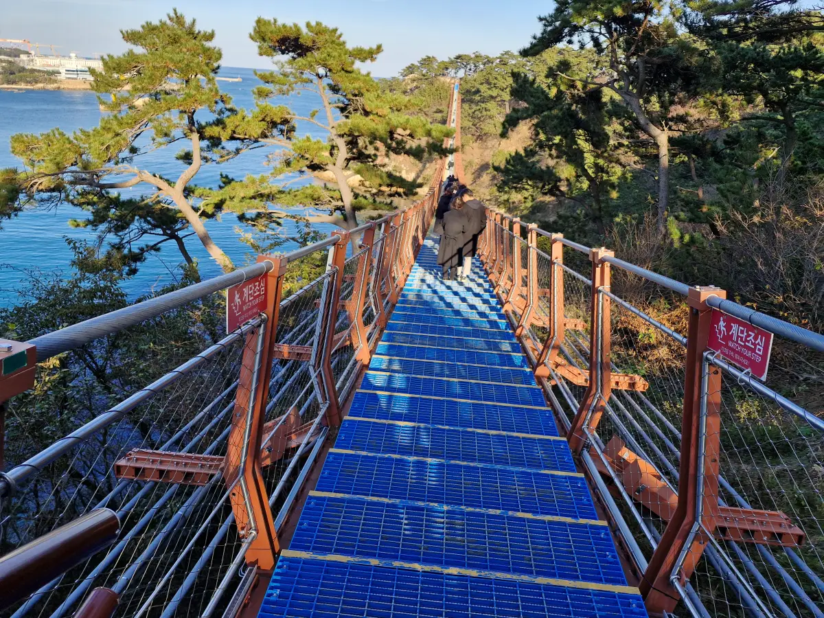 출렁다리를 건너면 보이는 경치도 좋습니다. 해안선을 따라 늘어선 건물도 보이고 항구와 배도 한눈에 보입니다.