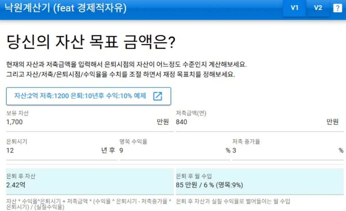 55세에 은퇴한다는 가정하에 나온 금액은 79억 4천만 원이다. 이 정도면 투자를 접고 은행에만 넣어둬도 충분히 먹고 살만큼 나온다.